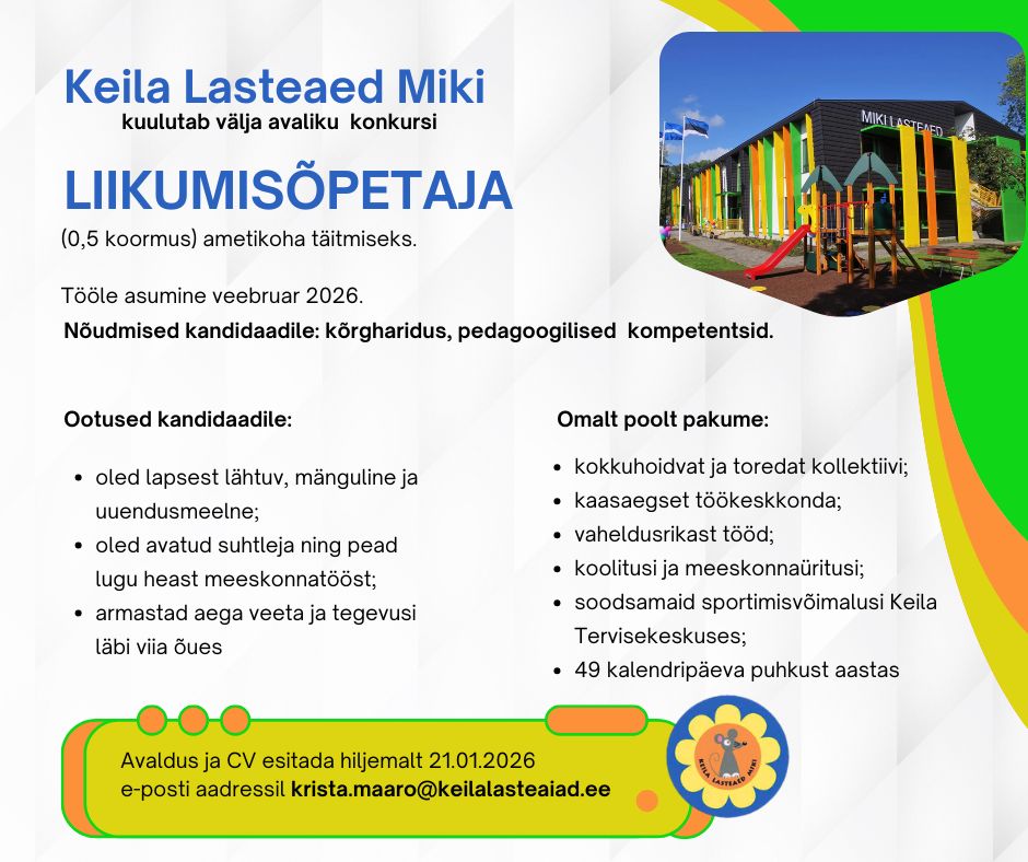 Keila Lasteaed Miki liikumisõpetaja konkurss